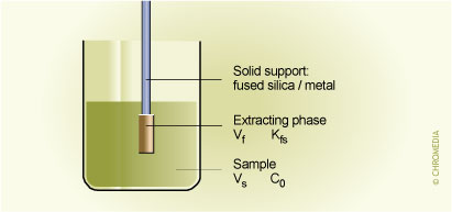 The most widely used technique of sampling with solid phase microextraction consists of exposing a small amount of extracting phase (coating) associated with a fibre to the sample, for a predetermined amount of time